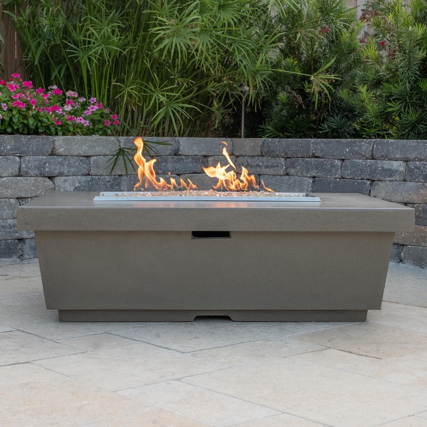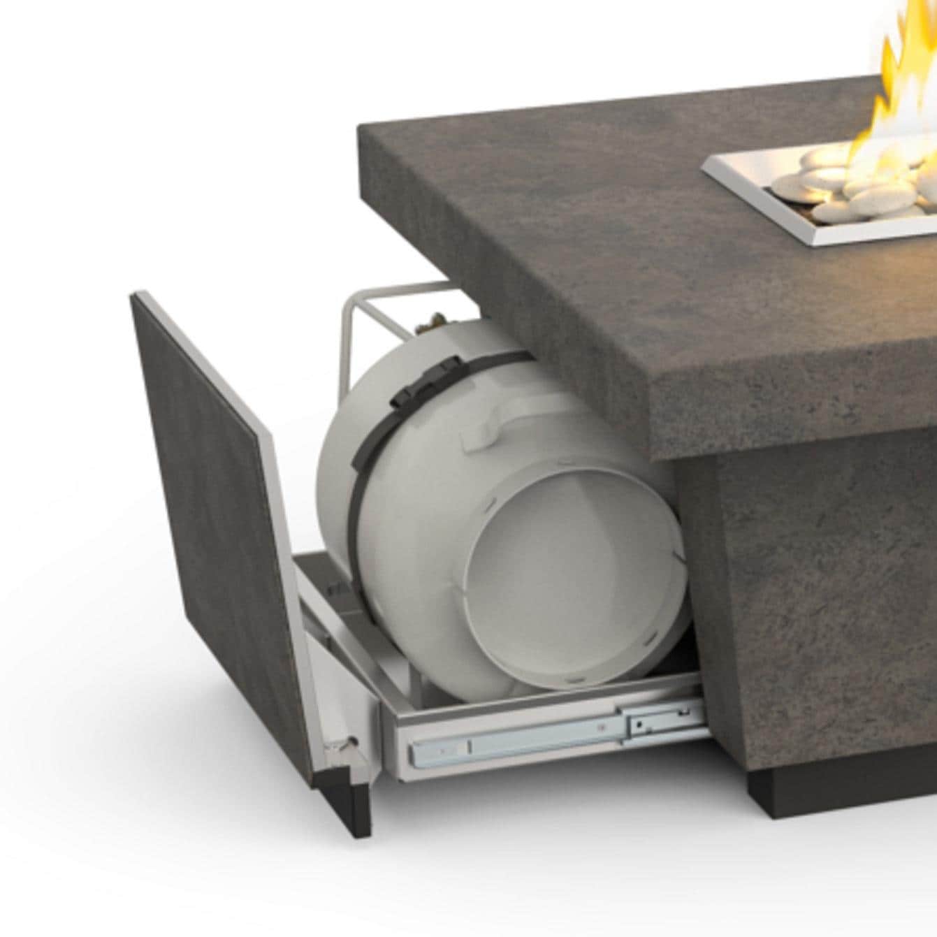 American Fyre Designs Contempo 52 Inch Rectangular GFRC Gas Fire Pit Table in Cafe Blanco